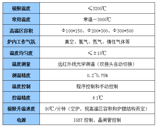 (1)可達(dá)到3200℃,常用溫度3000℃的高溫爐體,滿足各種材料的燒結(jié)和石墨化。